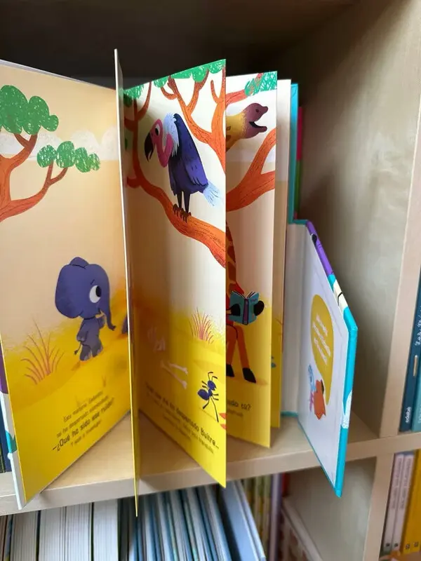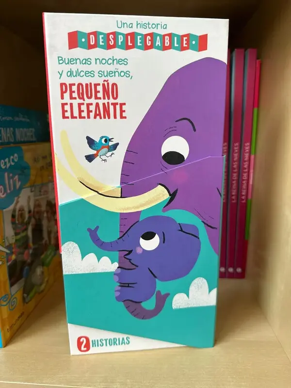 Libro con un novedoso formato en zigzag que incluye dos aventuras. Si se abre por un lado, el niño tendrá que ayudar a Pequeño Elefante a dormirse Y si da la vuelta al libro y lo abre por el otro, entonces descubrirá de dónde procede el ruido que lo ha despertado de esa forma tan brusca. Con una sencilla portada imantada que facilita el cierre, y con un tamaño idóneo para que manos pequeñas puedan manipularlo, este libro desplegable de buenas noches, y de buenos días, se convertirá en la mejor lectura para asentar rutinas.
