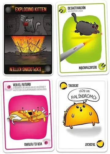 El resto de cartas del mazo se utilizan para mover, prever o esquivar a los temidos Exploding Kittens, añadiendo estrategia y tensión a cada turno.